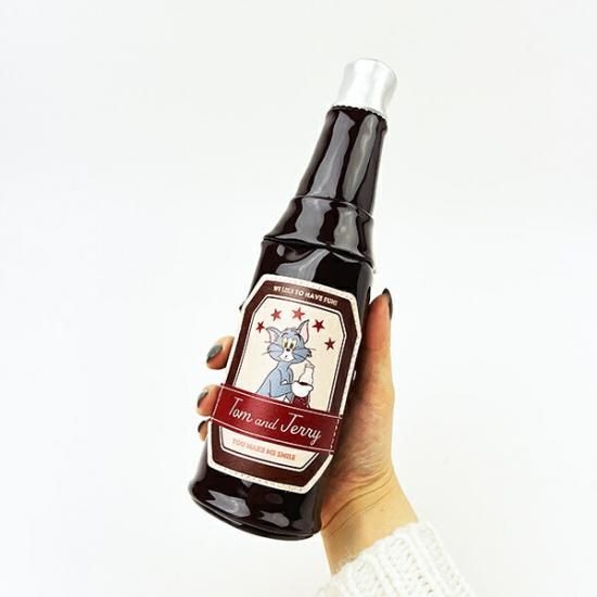トムは黒ビール?瓶のようなデザイン。きょとんとした表情のトムに注目です。