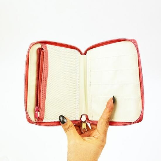 お薬やカードなどをコンパクトにきれいに収納できますメモやカードなどを入れるのに便利な通しポケット付きなのがうれしいポイントです。