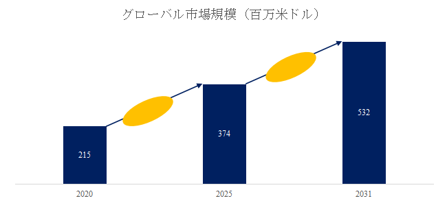 市場規模:安定成長で5億ドル超へ到達見通し