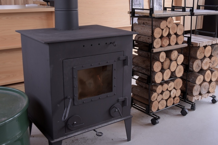 薪ストーブは、間伐材の針葉樹が使えるオリジナルの薪ストーブ「エコストーブ」をあしだが開発しました。エコストーブの製作には、南丹市を中心とした京都中部地域の熟練した鉄工職人の技術が活かされています。一つ一つの薪ストーブは丁寧に作られ、伝統の技と現代の知恵が融合した工芸品としての側面も持ち合わせています。また煙突構造にもこだわり、メンテナンスが簡単に行えるよう工夫しています。