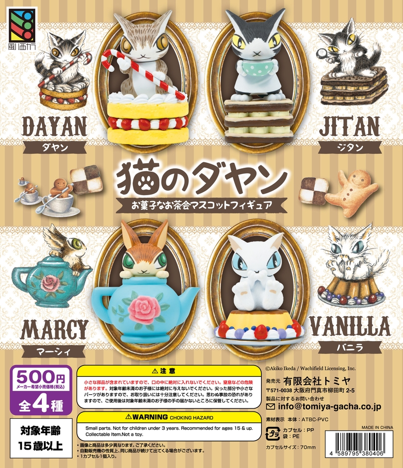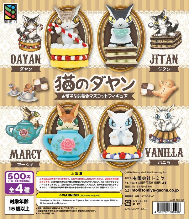 カプセルトイの卸問屋である有限会社トミヤ(本社:大阪府門真市、代表取締役社長:富 一人)は、自社オリジナルブランド「風ハ西カラ」から、「猫のダヤン」お菓子なお茶会 マスコットフィギュア全4種のラインナップを2024年11月15日(金)より販売いたします。