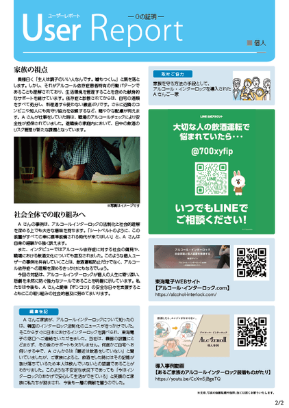 当社は今後も、個人ユーザーへの導入サポートや相談窓口の充実を図るとともに、こうした事例の共有を通じて、アルコール・インターロックの社会的認知と普及拡大に努めてまいります。
