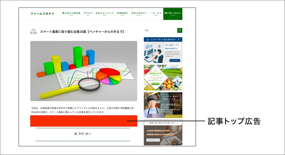 貴社にご指定いただいたブログ記事のトップ(目次前)にバナー広告を掲載します。