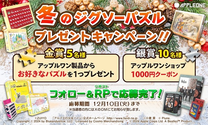 来る12月から、《レオ・レオニ ジグソーパズル》を含むアップルワン製品が当たるプレゼントキャンペーンを、アップルワン公式Xで開催します。