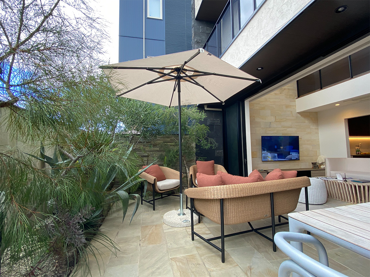 Kayu styleとともに株式会社BSサポートが運営する住宅事業『Kayu style ハウス』の埼玉支店と伊勢崎展示場、太田展示場にてSCOLARO社パラソルを特別展示。