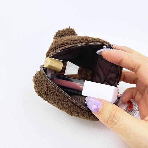こちらはカラビナ付きミニふわポーチ。サイズ:6.5cm×9cm×4cmでコロンとしたフォルムがなんとも可愛らしい!