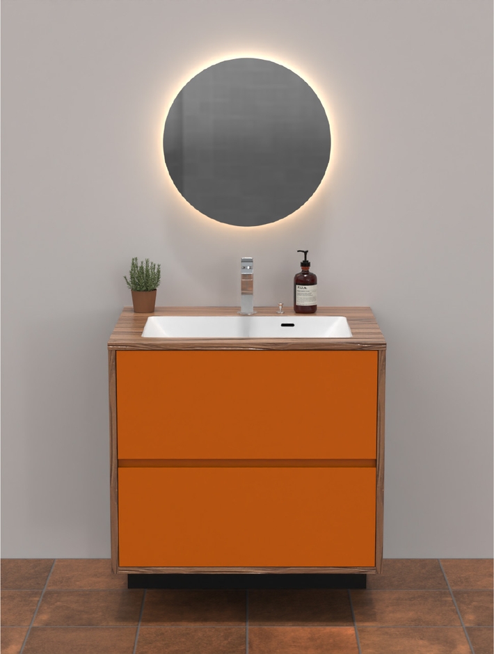 収納扉の色、カウンターおよびボウルの色・柄、水栓のデザイン、キャビネットの幅をセレクトできるのが特徴です。暮らしのイメージに合わせ、お好みの洗面化粧台に仕上げることができます。