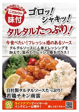 【首都圏ライフ】タルタルソースをリニューアルし2倍に増量!「自社製タルタルソースたっぷり!若鶏チキン南蛮」を新発売!
