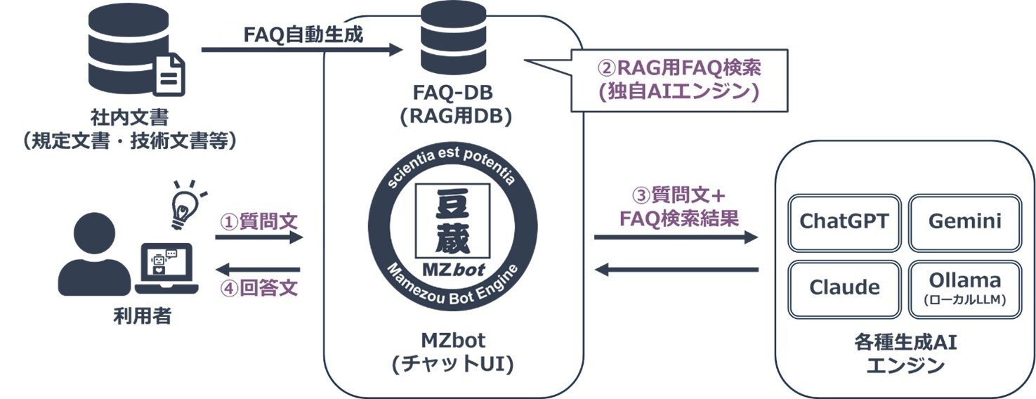 株式会社豆蔵(本社:東京都新宿区、代表取締役社長:中原 徹也、以下「豆蔵」)は、自社が開発した対話型AIエンジン『MZbot』の生成AI関連の機能を大幅に強化し、「マルチLLM接続」「FAQ-RAG機能」等の新機能を搭載した新バージョンの提供を2026年4月上旬より開始します。本リリースにより、セキュリティレベルの高いデータセンター、製造現場、航空機、船舶、離島、緊急避難場所など、インターネットと接続できない環境においても、生成AIをご利用いただくことが可能となるため、企業における生成AIの活用範囲を大幅に広げられるものと考えております。