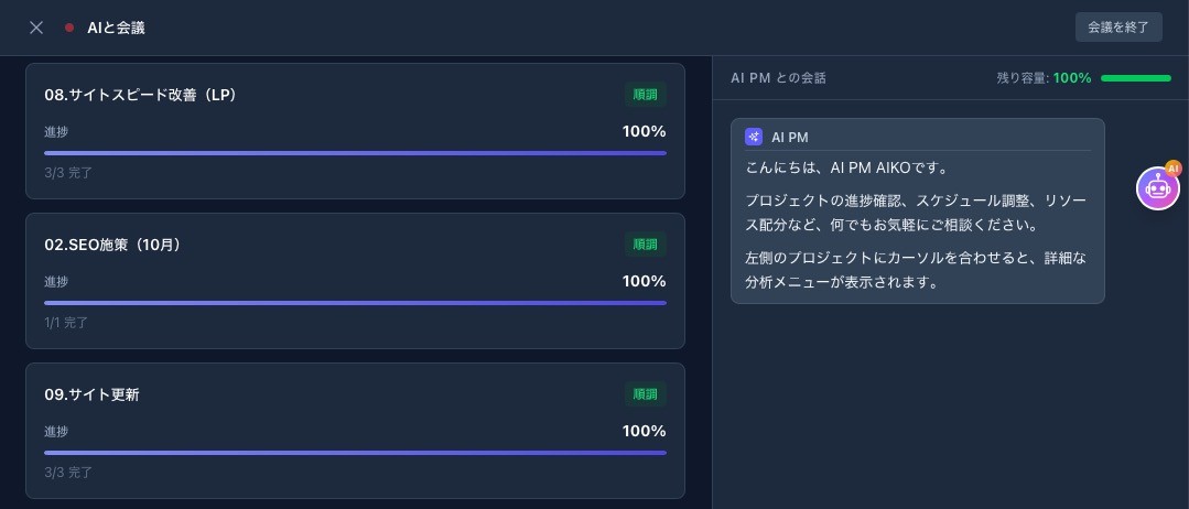 2. AIと会議(AI PM機能)