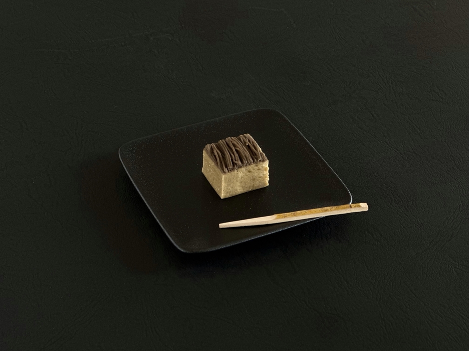 厳選した熊本県産の球磨の栗をふんだんに使った栗きんとんです。職人が心を込めて一つ一つ手作りしています。栗の風味と食感を残すために粗ごしした栗きんとんの上に繊細で滑らかな食感の1mmのほうじ茶ぺーストをふんだんにかけました。繊細な見た目にこだわり、口に入れると栗とほうじ茶の香ばしい香りが広がります。ほうじ茶栗きんとん(琥珀)の優しい味わいを是非お楽しみください。