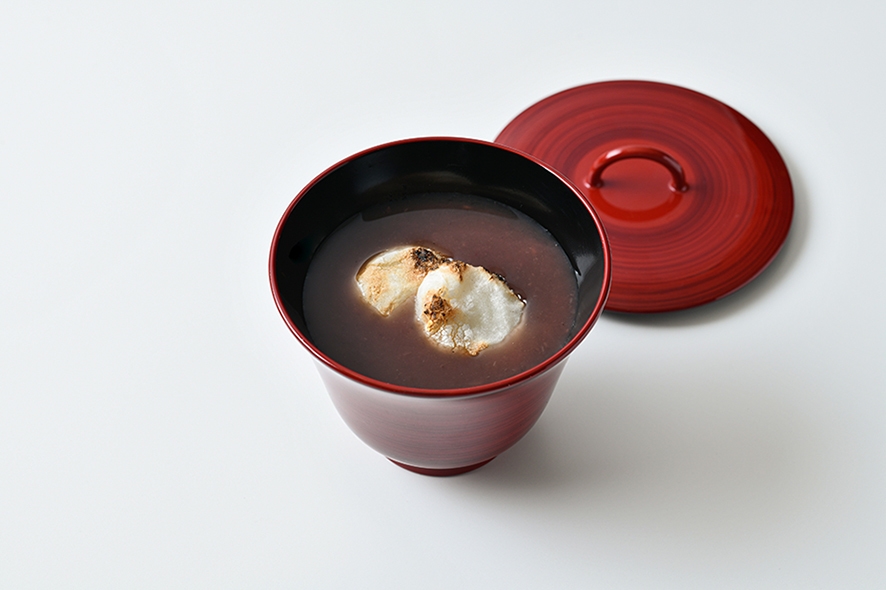 北海道十勝産の小豆を使用し、なめらかな口あたりに仕立てたおしるこに、千葉県成田市にある「おかげさま農場※1」の特別栽培米「マンゲツモチ※2」を添えました。