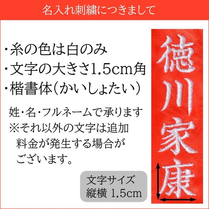 刺繍糸の色は白色・灰色・黒色・赤色・青色・黄色・緑色の7色から1色お選びください。