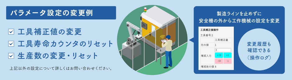 新機能(1):「設備パラメータ設定」機能〈工作機械を止めずに遠隔から設定変更を可能に!〉
