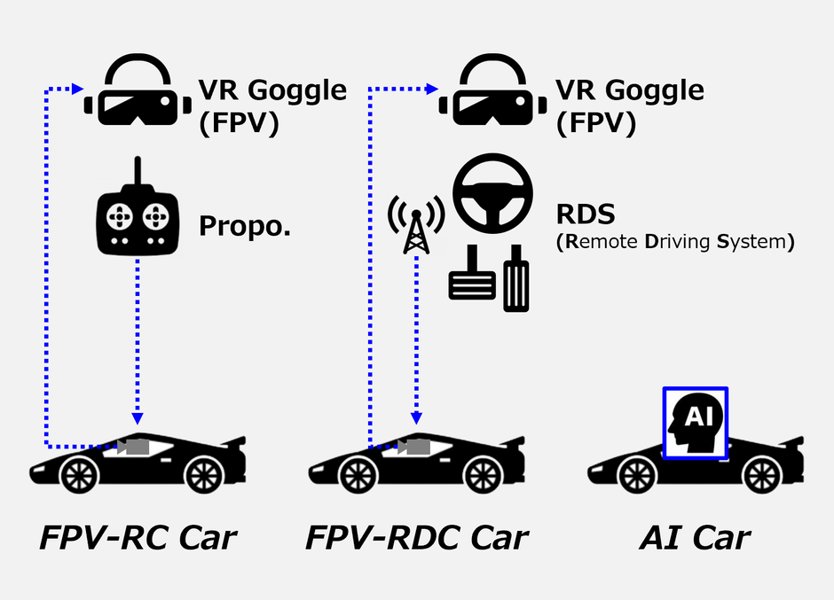 ●FPV-RDC Car:車載カメラ映像をVRゴーグルで見ながら(FPV)、