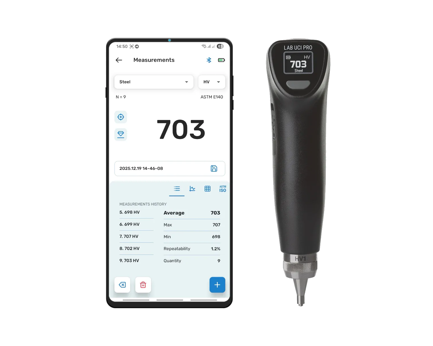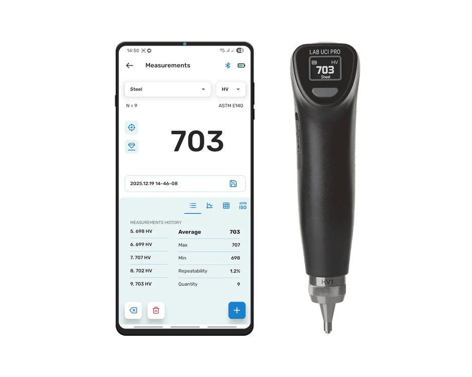 『Lab UCI Pro』は、従来のUCI硬さ計の課題であった測定の繰り返し性を大幅に改善、測定精度を向上させた第2世代のUCI硬さ計です。