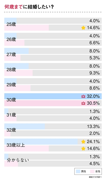 「30歳までに結婚したい」が30%、「33歳以上で結婚したい」は18%!
