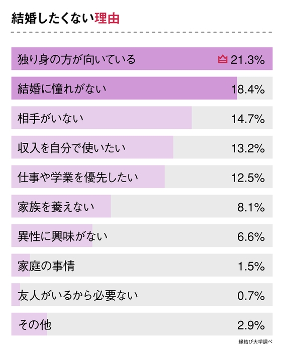 結婚願望がない理由は「独り身の方が向いている」「結婚への憧れがない」から