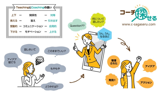 『コーチ探せる』ではコーチングを、“対話によって気づきや発見、学び、そして行動を得る機会”と定義しています。