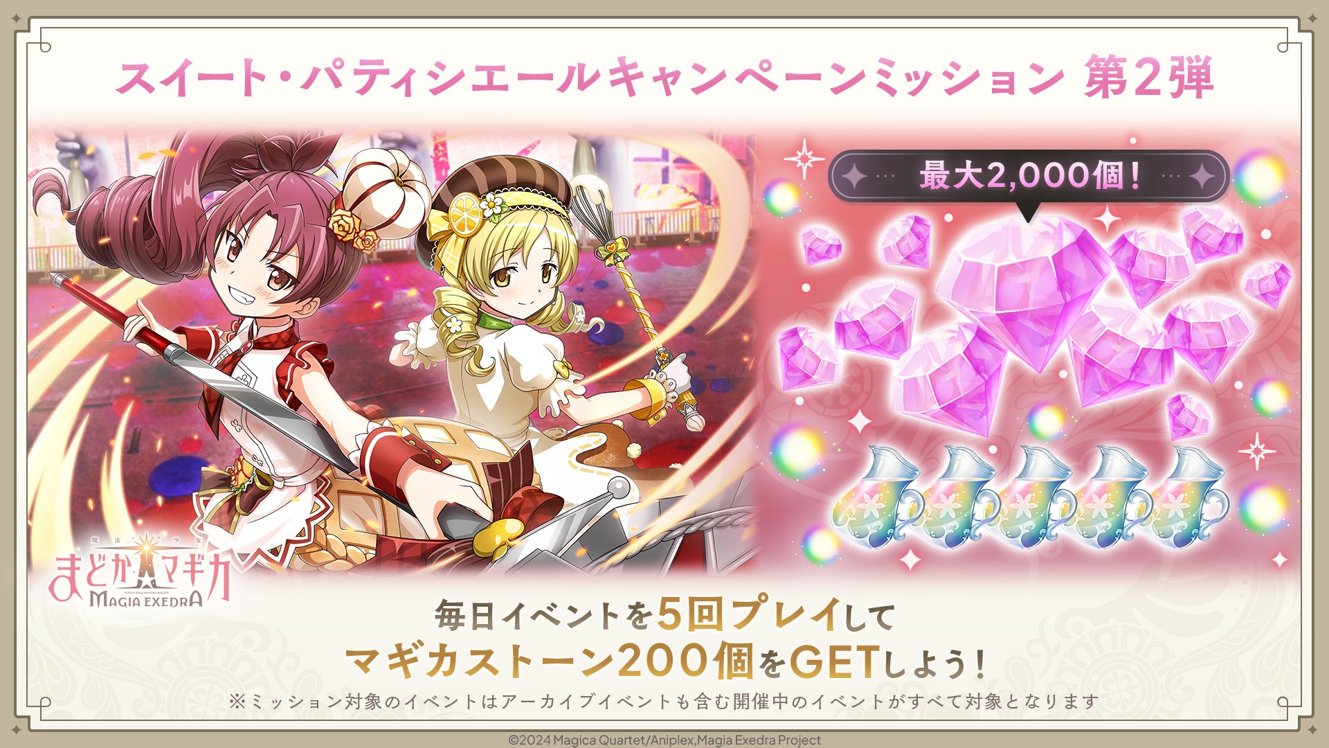 まどドラ 〜スイート・パティシエールキャンペーン〜 開催中!マギカストーン最大で2,000個もらえるミッションを開始!