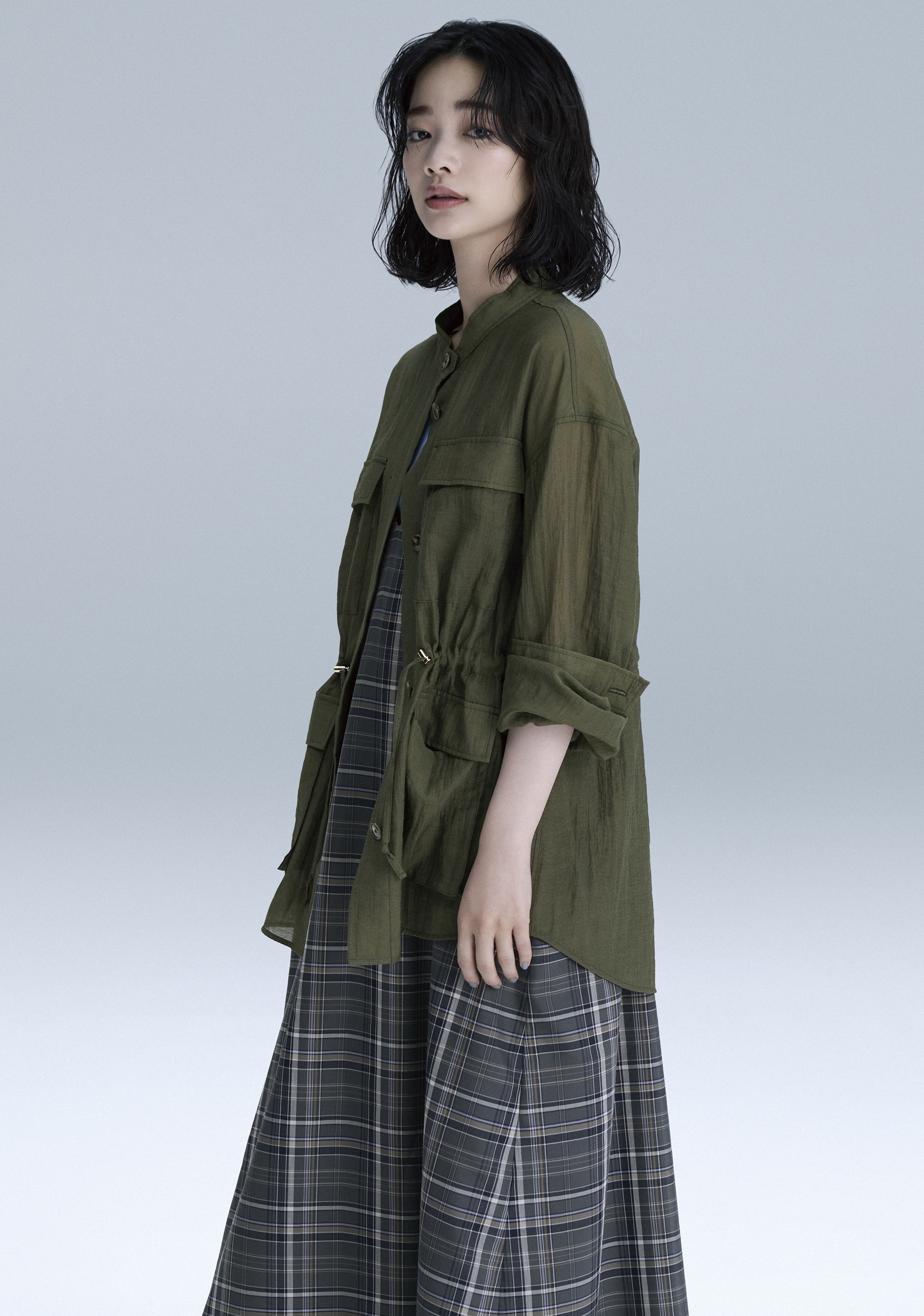見上さんが着こなす、『23区』の最新春夏コーディネート合計10パターンを公開します。「Cool」と「Cute」、それぞれのイメージに合わせた二面性を表現する、見上さんの表情にも注目です。
