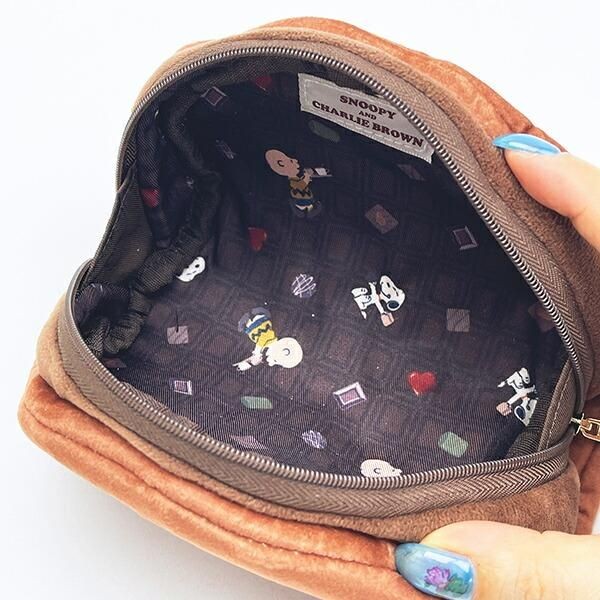 ポーチの外観だけでなく、内側には愛嬌たっぷりなスヌーピーの総柄がポーチのなかいっぱいに広がっています。中身はしっかり入る広さがあり優秀すぎます。サイズ:10cm×18cm×7cm 素材:ポリエステル PU ナイロン 亜鉛合金