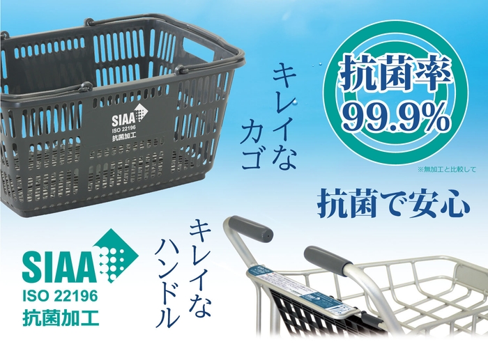 お客様に安心して使っていただける抗菌素材の製品である証として、買物カゴやショッピングカートにSIAA(抗菌製品技術協議会)のマークを記載しております。