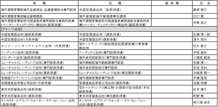 宝ホールディングス株式会社およびグループ会社では、2024年4月1日付で人事異動をおこないます。