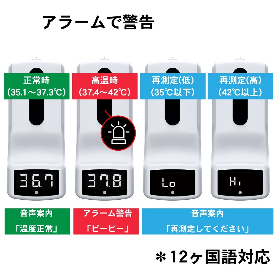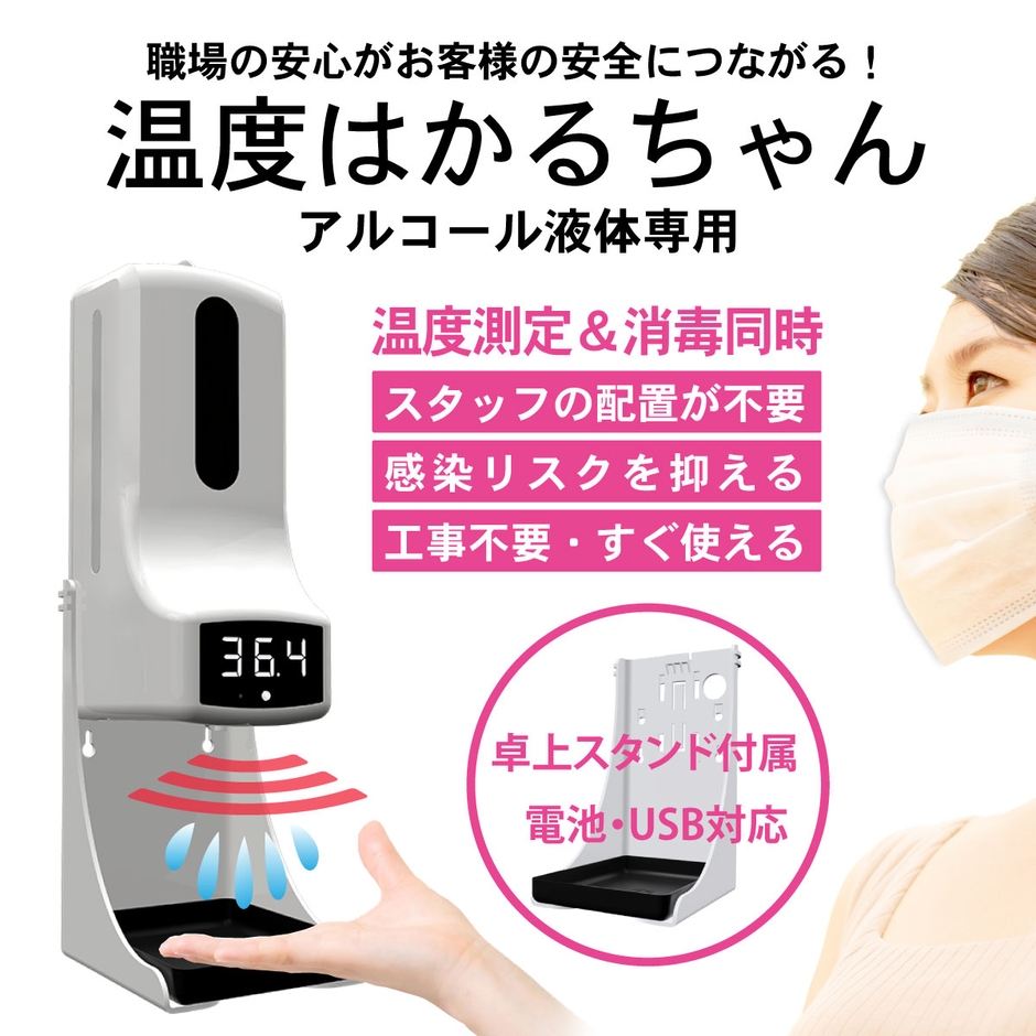 ミスターカード株式会社(本社所在地:埼玉県川口市)は、約1秒で温度測定&消毒を同時にできるオートディスペンサー「温度はかるちゃん 液体専用」を2020年12月17日(木)に発売します。すでに販売している「温度はかるシリーズ」の上位モデルとして、乾電池またはUSB接続で動作、卓上スタンドを標準で付属、最大999回までの仕様回数を記録、12か国語の音声またはアラームでお知らせ、警告温度範囲の調整など業務効率を向上につながる便利な機能が追加されました。コロナ禍と共存しながら、経済と安全を共栄するためにオフィスや飲食店、小売店、商業施設、会場など、職場の安全をつくることで、お客様の安全につながる感染予防対策をご提案いたします。