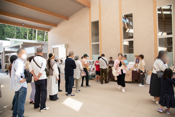 ファームレストランとファームショップの間に位置する「にぎわい広場」は、家族や友人と楽しめる開放的なスペース。昨年10月のリニューアルオープン以降、栃木県の生産者や牧場と親和性のあるアーティストと交流できる参加型イベントを定期的に開催。地域とお客様をつなぎ、新たな牧場の価値を創造しています。