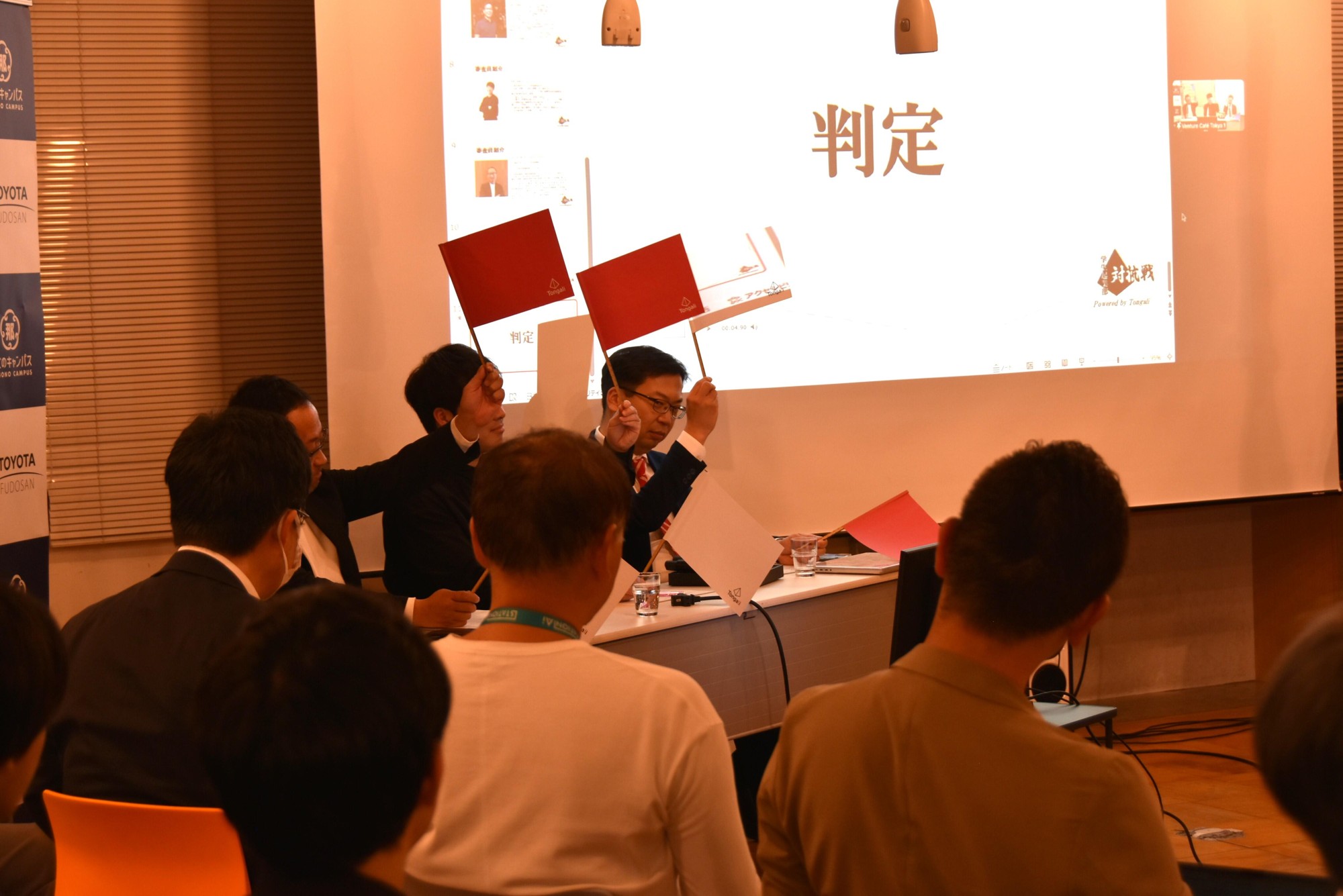 対戦相手の静岡理工科大学の「SIST」も魅力的な提案が相次ぎ、先鋒戦では敗戦、大将戦では勝利を収めましたが、同点となり、会場の拍手の大きさで惜しくも敗れ、準決勝進出はなりませんでした。