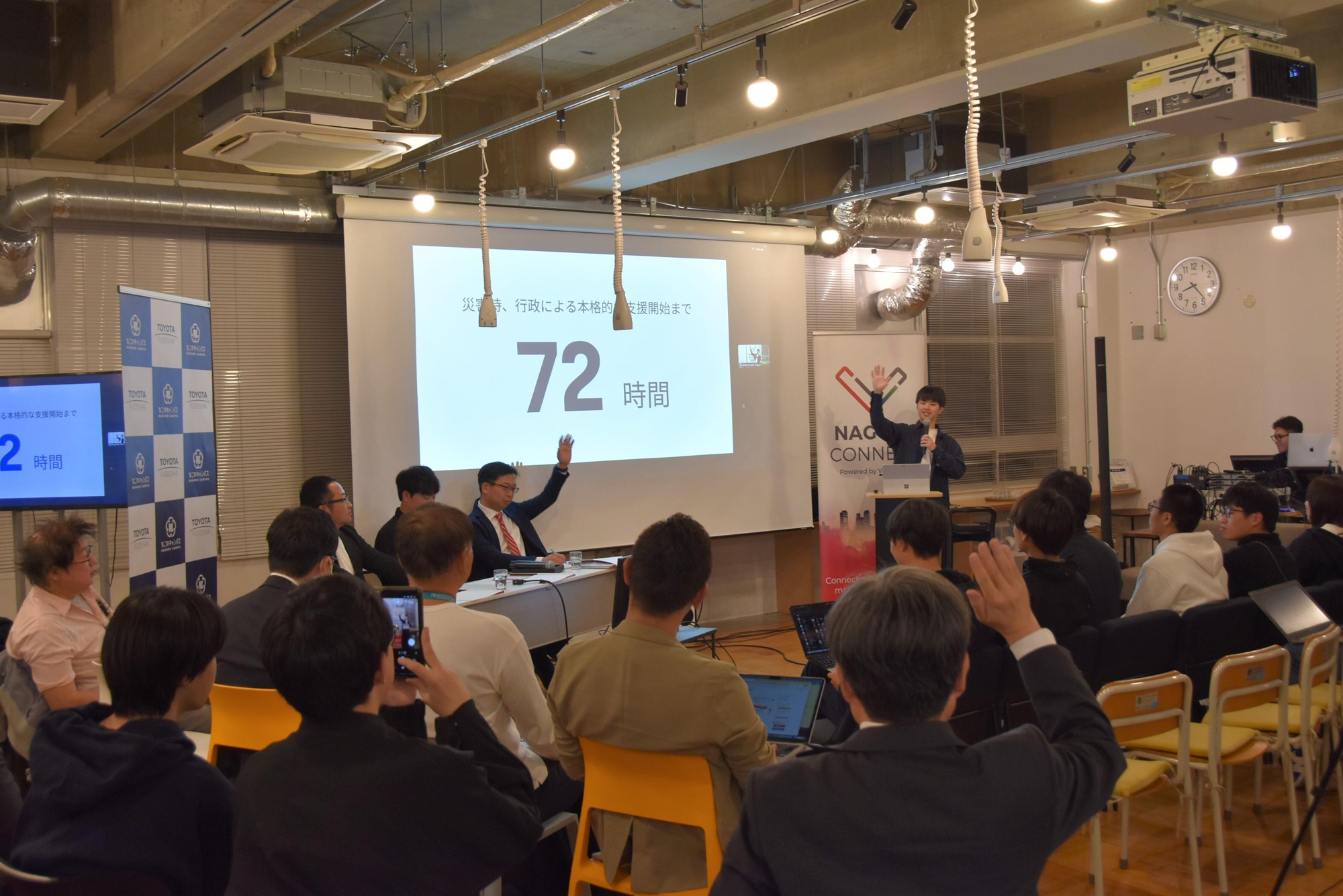 第2回東海学生起業部対抗戦の予選が11月14日、多機能型インキュベーション施設「なごのキャンパス」(名古屋市西区)で開催され、起業に関心のある学生や起業を目指す学生が集う本学の「MEIJO STARTUP CLUB」から、篠田裕太さん(理工学部3年)と大杉駿さん(情報工学部3年)が出場しました。