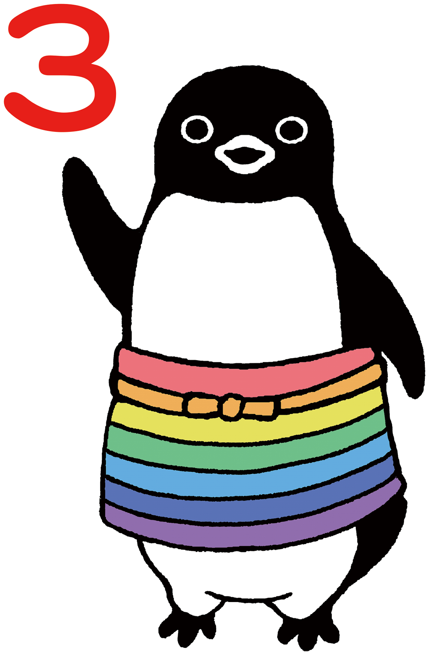 SKYGALLERYにちなんで描かれた、スカイブルーが綺麗な「SKYCAFEのペンギン」や、虹色がカラフルで楽しい「虹のエプロンのペンギン」が、3周年記念グッズになって登場です。