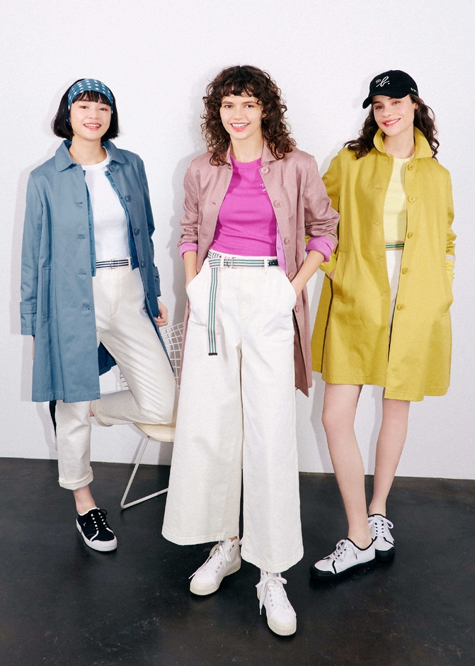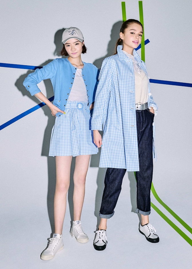 さわやかなプレッピースタイルをつくるアイテムとして、ヴィシーチェックは定番ブラック×ホワイトのほかブルー×ホワイト、グリーン×ホワイトのカラーパレットが季節のムードを演出。デニムと合わせたいアウターやブラウス、ボトムスのほかワンピースもラインアップします。