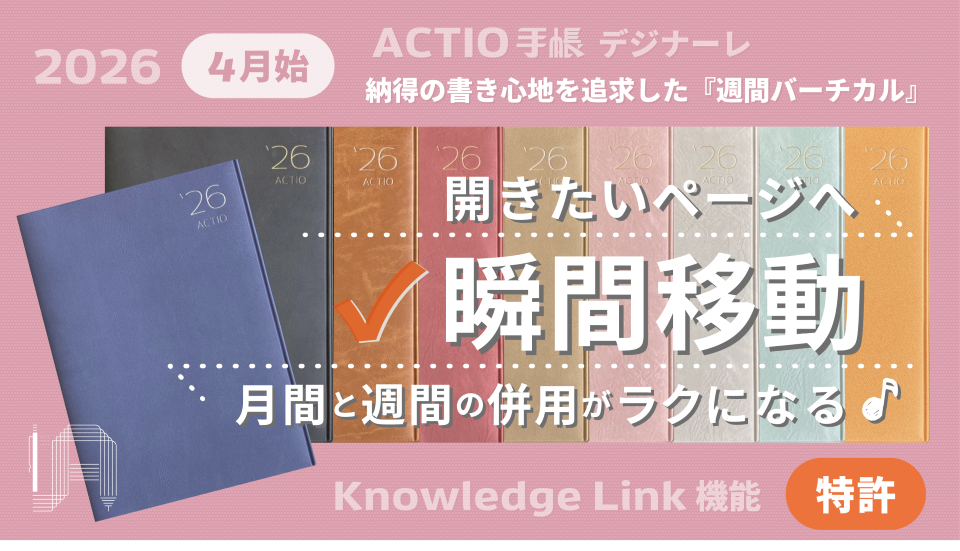 開きたいページへ瞬間移動! 納得の書き心地を追求した週間バーチカル型 「2026年4月始・ACTIO手帳 デジナーレ」をリリース