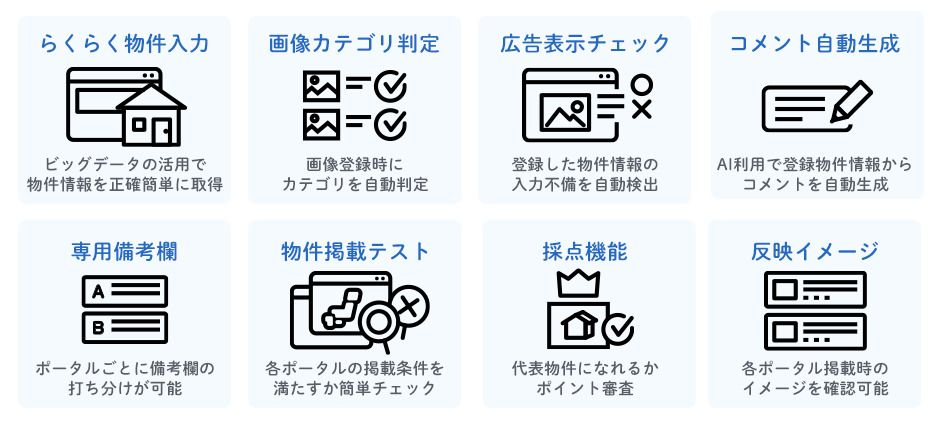 AIを利用し、登録物件情報から各ポータルサイトの仕様に合わせたコメントを自動生成可能です。