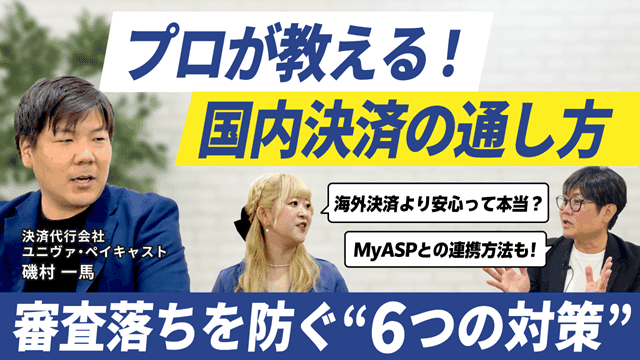 タイトル:プロが教える!国内決済の通し方|海外決済より安心って本当?MyASPとの連携方法も!審査落ちを防ぐ6つの対策