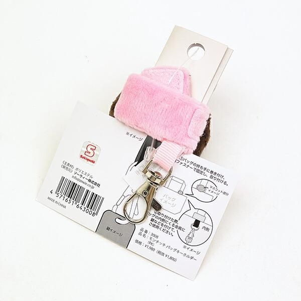 バッグの持ち手に巻き付けてファスナーで固定し取り付けられるようになっているようです。取り付ける際にバッグの内側にくる金属に鍵などを付けてアレンジできますよ。バッグの中を探さずに見つけやすくなるので便利が愛らしいアイテムではないでしょうか?サイズ:20cm×17cm×0.2cm 素材:ポリエステル