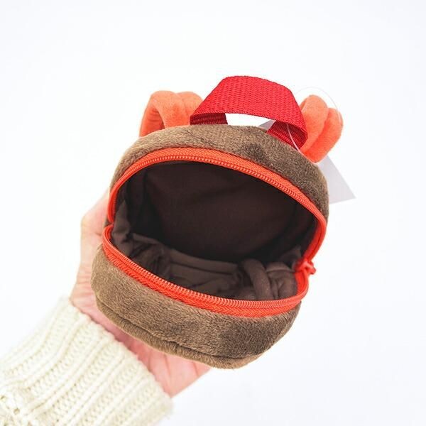 まるで小さなリュックサックのようなこちらのポーチはお菓子や小さい小物を入れるのにぴったりなサイズ感です。愛らしく小さめサイズで、小さいお子様のおもちゃとしても使えそうです。また、小さめリュックポーチということをいかして、モンチッチのぬいぐるみなどに背負わせてぬい活にもおすすめですよ。 サイズ:11.5cm×10cm×3cm 素材:ポリエステル