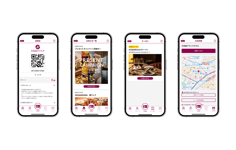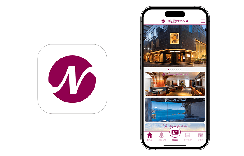 本アプリは、株式会社中島屋ホテルズ(以下 中島屋ホテルズ)の会員制度リニューアルの一環で導入され、中島屋ホテルズが運営するホテルやレストランで利用可能な会員証アプリです。