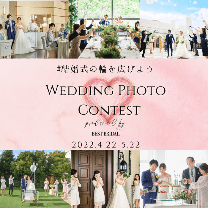 “たくさんの、LOVEを届けよう。”をブランドスローガンに掲げる株式会社ベストブライダル(本社:東京都渋谷区/代表取締役:塚田正之)では、「結婚式の写真」と「ゲストとのエピソード」を募集する「#結婚式の輪を広げよう SNSウエディングフォトコンテスト」を2022年4月22日(金)よい夫婦の日~5月22日(日)まで開催いたします。