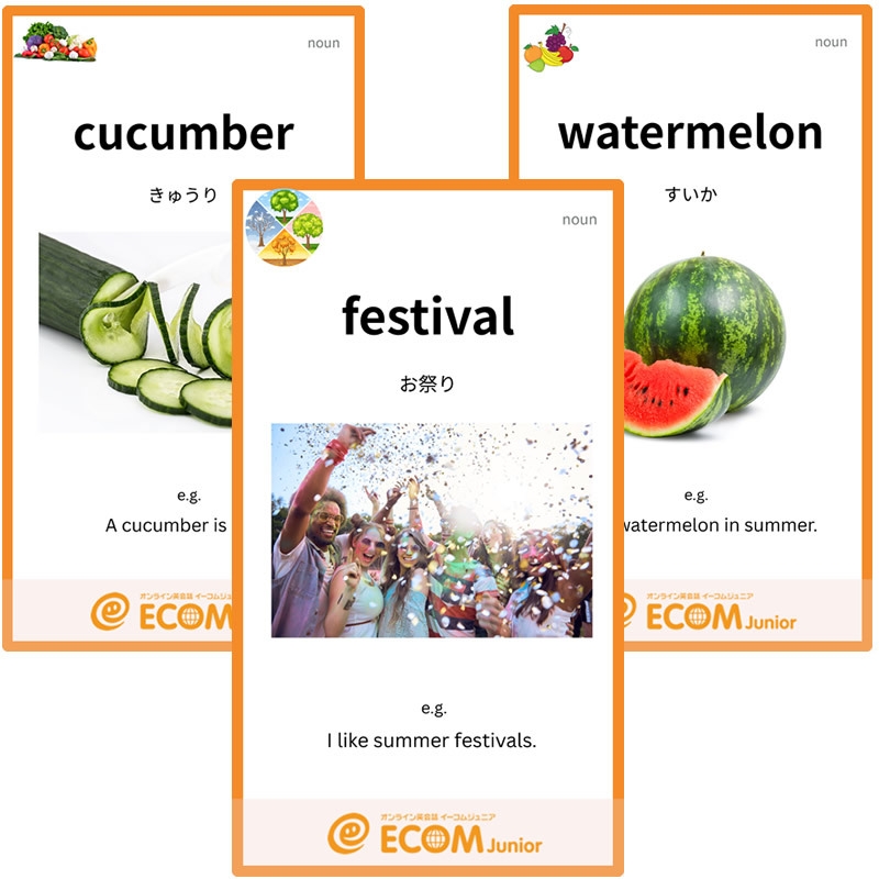これが英会話の基礎となる語彙のため、英語嫌いを増やさないために、当校ECOM特製のフラッシュカード700枚を用いて、夏休みに、英単語を楽しく学べる特別クラスを開講することにしました。