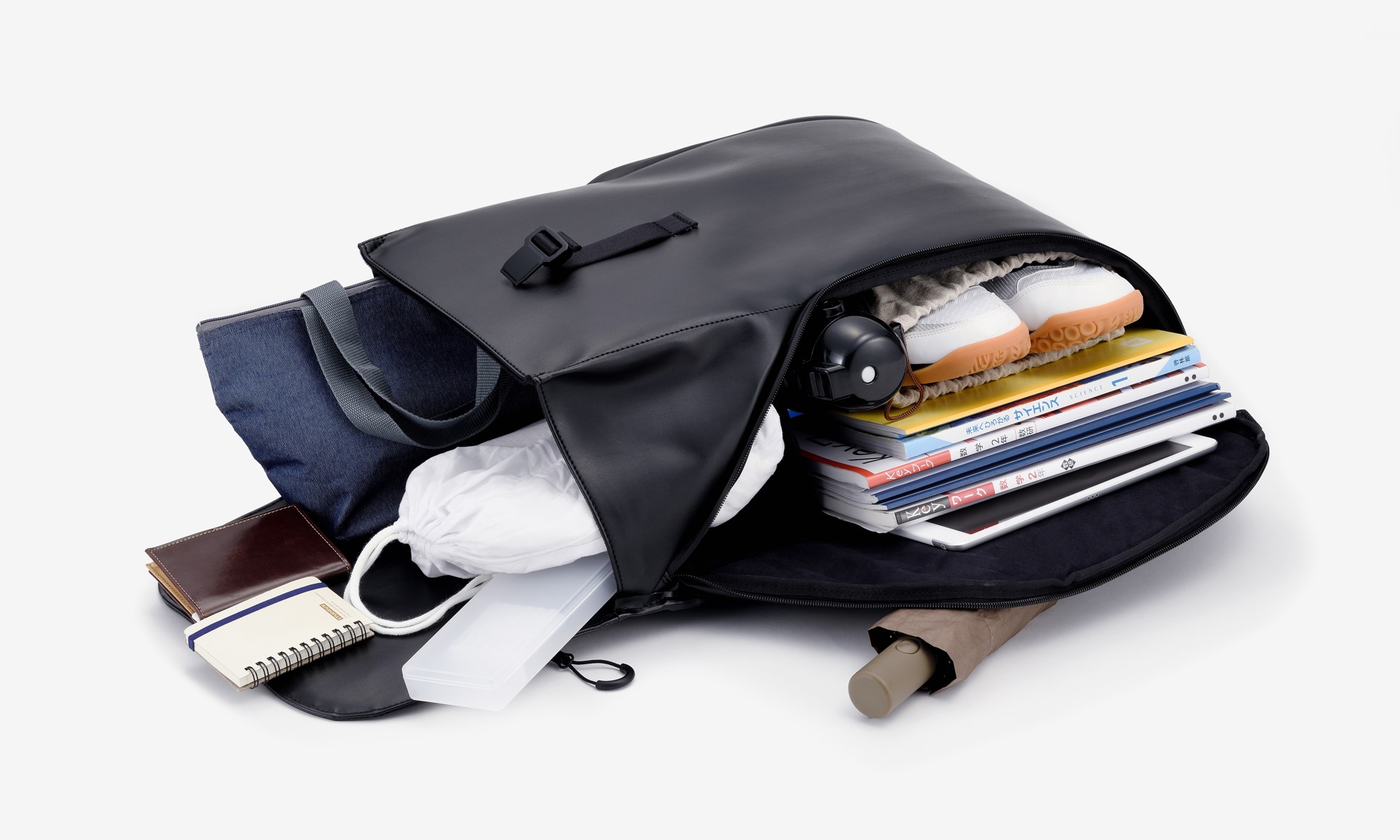 - 天候に左右されない機能性:止水ファスナーを採用し、雨天時の内容物保護に配慮。