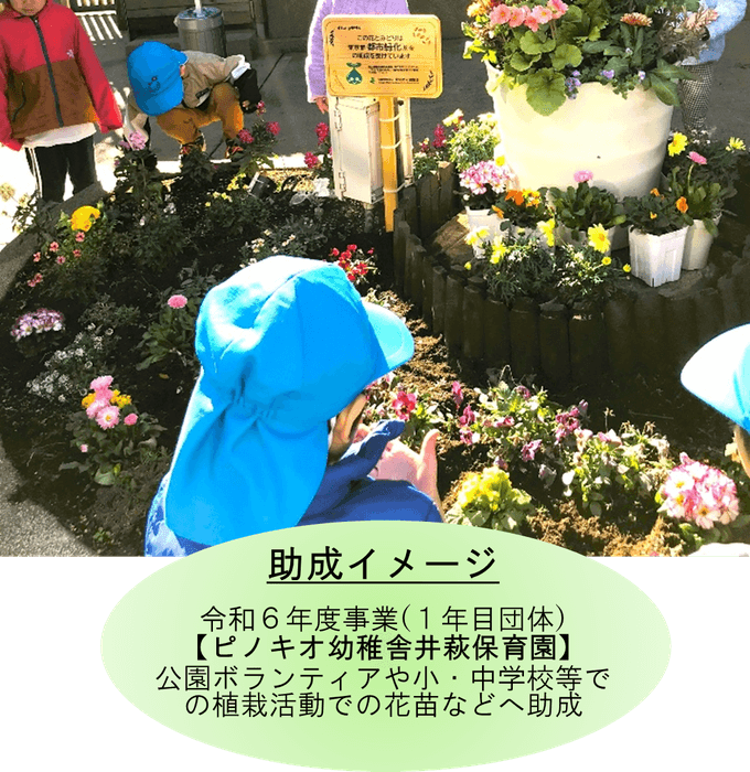 民間施設の緑化工事や公共的な場所での花壇づくり活動に対して、工事費や活動費の一部を助成します。