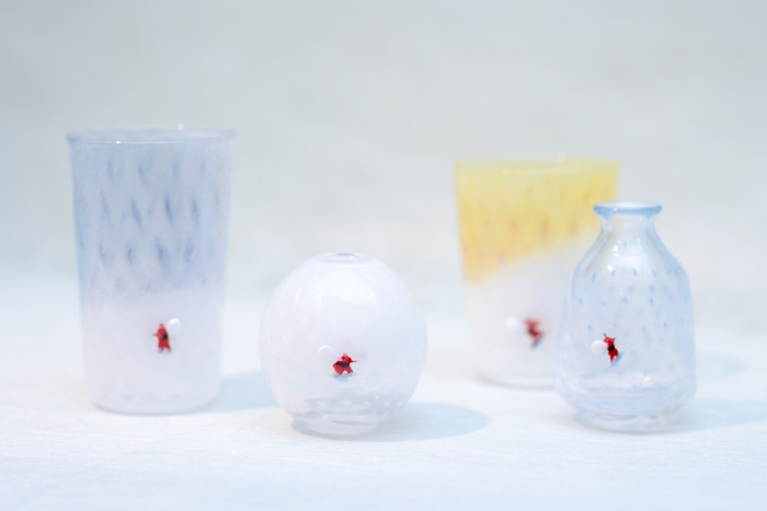 展示には、日本各地で活躍するガラス作家23名の一点ものが集結。グラスやプレートなど日常に寄り添う器から、ツリーやサンタのオブジェまで、ホリデーシーズンを彩るアイテムが並びます。すべての作品は実際にご購入いただけます。暮らしをブライトアップするインテリアとして、また特別な贈り物としても最適です。
