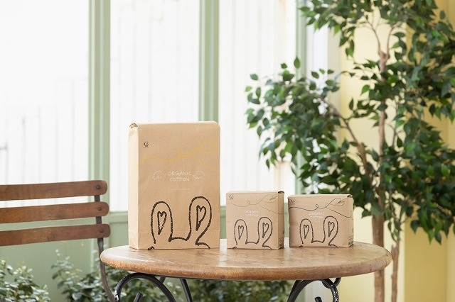 また環境にやさしいオーガニックコットンを使った商品だからこそ、包装袋の素材にまでこだわり、従来のポリ袋から環境に配慮した紙袋に変更。使用後の紙袋は簡易的なサニタリーボックスとしても使用できます。