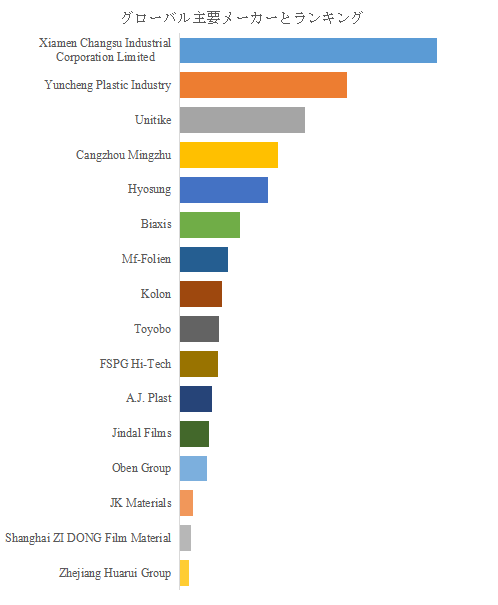 LP Informationのトップ企業研究センターによると、二軸延伸ナイロン(BOPA)フィルムの主要企業には、Xiamen Changsu Industrial Corporation Limited、Yuncheng Plastic Industry、Unitike、Cangzhou Mingzhu、Hyosung、Biaxis、Kolon、Mf-Folien、Toyobo、FSPG Hi-Techなどが含まれる。2024年におけるトップ5企業の市場シェアは約60%であり、業界は中程度の集中度を示す。Xiamen Changsuは高性能包装材向け製品の研究開発に注力し、用途開発を加速させる。Hyosungは加工性と耐久性を両立させた製品ラインを展開し、食品・医薬品向け用途への対応を強化する。Toyoboはラミネートや複合フィルム用BOPAの製造効率向上と品質安定化に注力しており、各企業は技術革新と市場対応力を武器にグローバル市場での優位性を確立している。