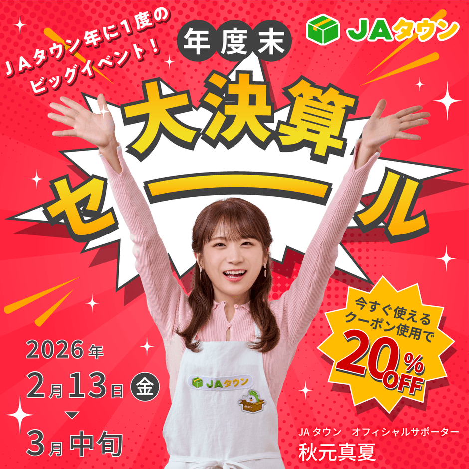「おいしい日本と暮らそう。」をテーマに、「JAタウン」に出店する全国の農協(JA)などが、各産地で育まれた旬の農畜産物や特産品を、インターネットを通じてお客さまに直接お届けし、食を通じて豊かな暮らしの実現を目指しています。