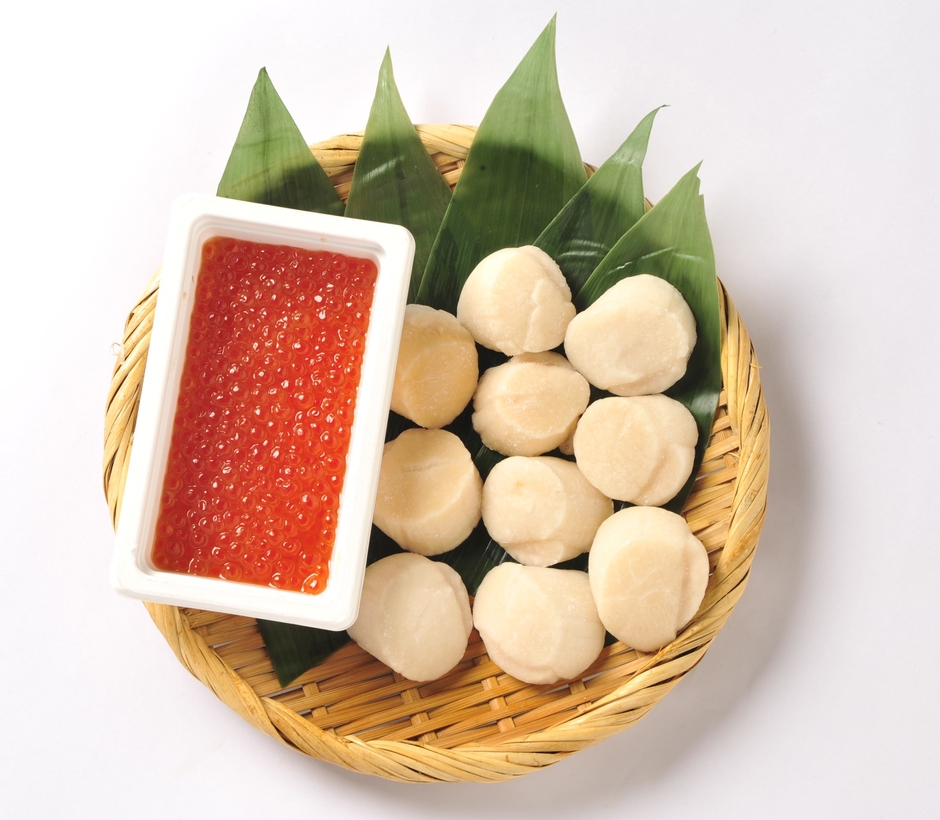 セット内容:いくら醤油漬…約100g、ほたて貝柱…約250g