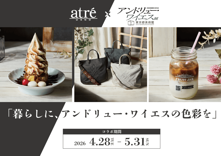 株式会社アトレ(本社:東京都渋谷区/代表取締役社長:高橋 弘行※)が運営するアトレ上野(所在地:東京都台東区)では、2026年4月28日より東京都美術館(東京・上野公園)にて開幕する、日本では17年ぶりとなる待望の回顧展「アンドリュー・ワイエス展」とのコラボレーション企画を、2026年4月28日(火)~5月31日(日)の期間、実施します。館内対象レストラン・カフェにてアンドリュー・ワイエスの絵画の世界観を表現したコラボメニューを展開するほか、限定ノベルティのプレゼントも実施します。